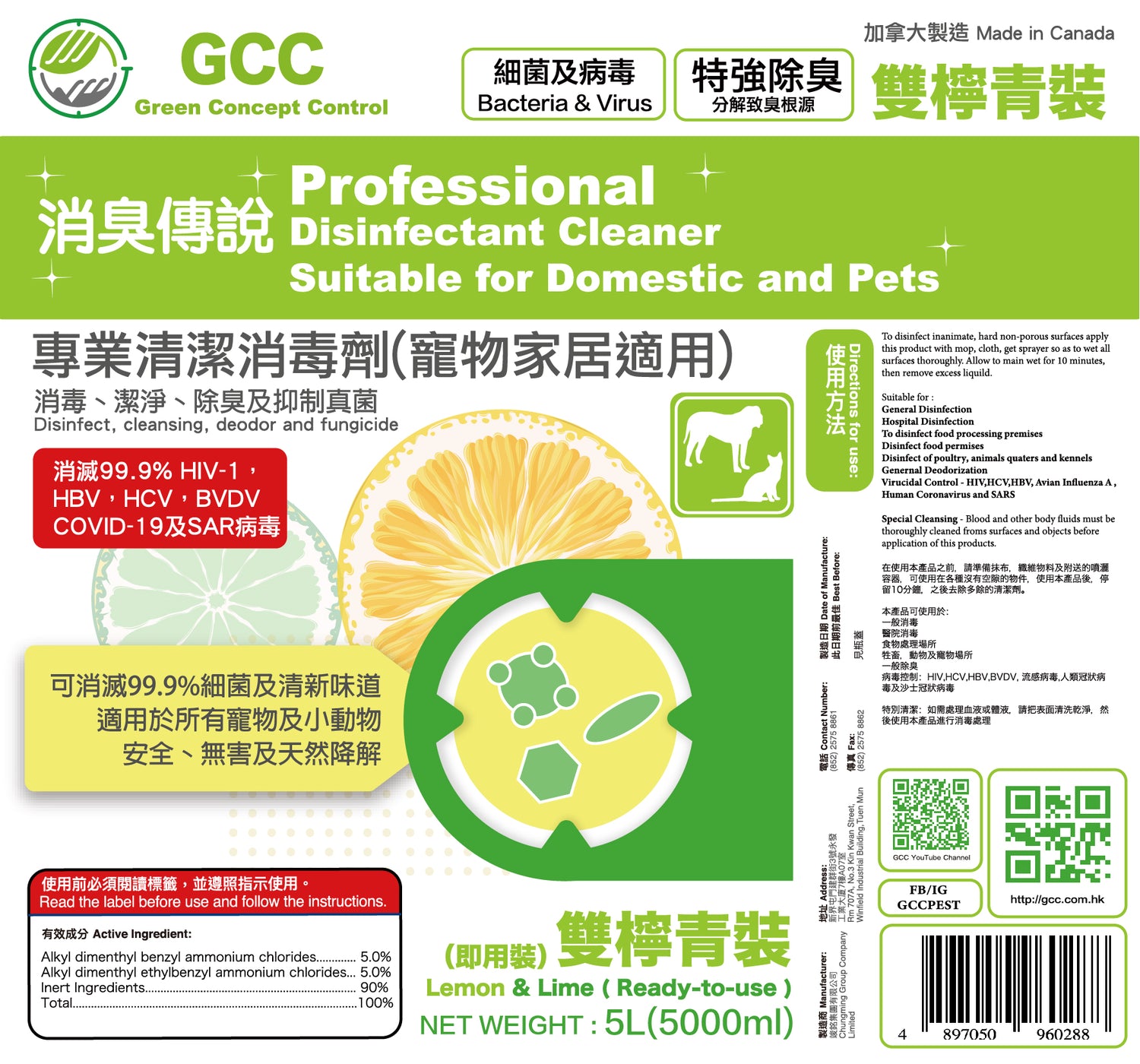 GCC專業清潔消毒劑(寵物家居適用) 5 L(升) 雙擰青裝